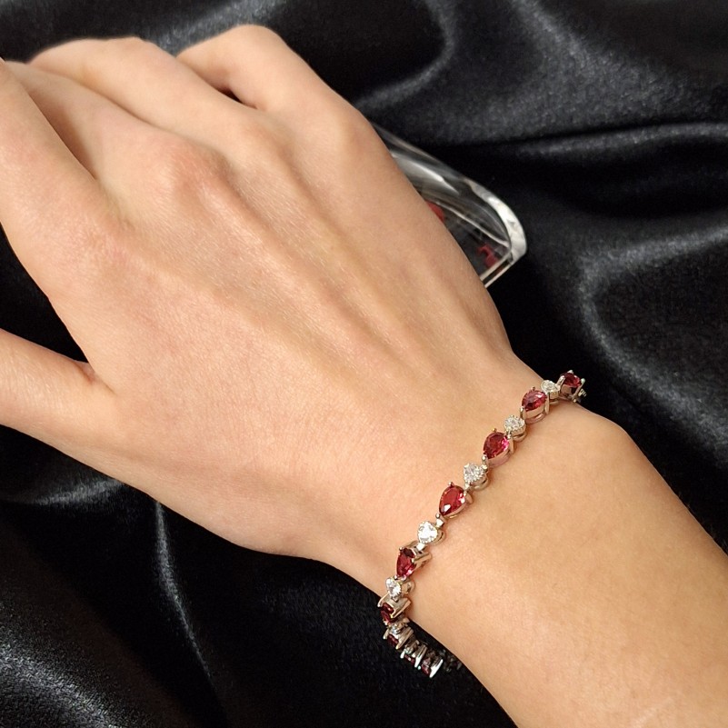 Нежный, женственный браслет из серебра 925 пробы в фантазийном плетении, со вставками сверкающих фианитов необычной формы и очаровательных рубеллитов! Уникальная возможность подчеркнуть свою индивидуальность, придать образу женственности, неповторимости и нежности.