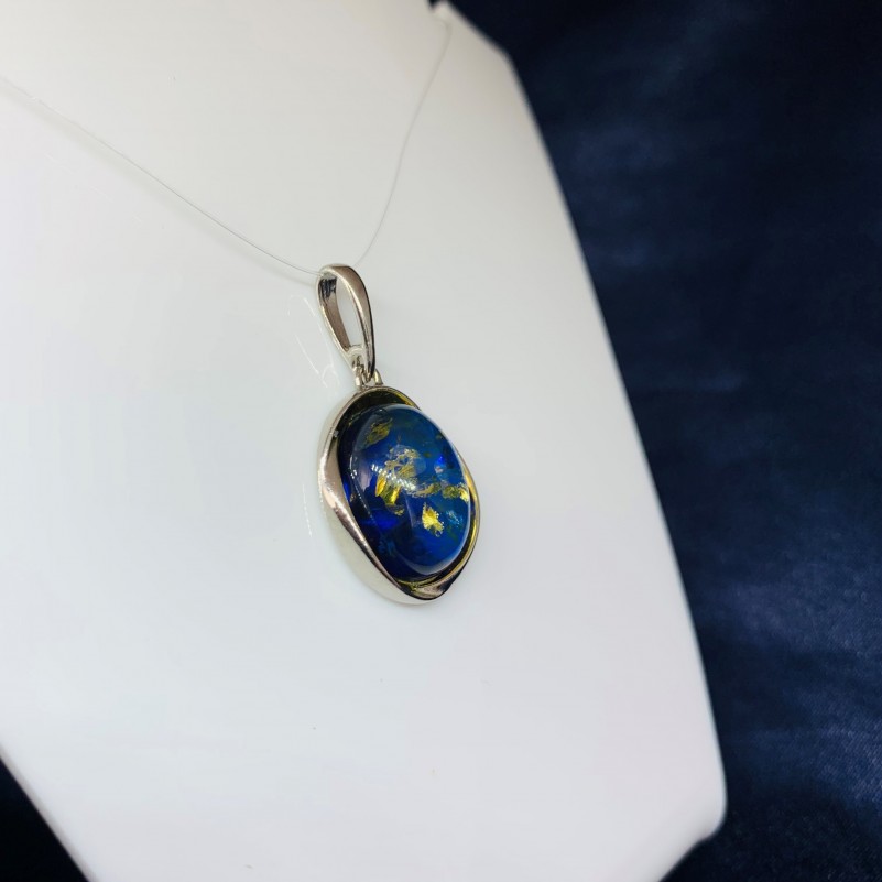 Очаровательная подвеска из родированного серебра 925 пробы с уникальным янтарём, с этим удивительным «кусочком солнца». Изделие выполнено по специальной технологии, в процессе которой на янтарь лимонного цвета на дно добавляется подложка синего. За счет пропускной световой способности янтаря получается такой особенный цвет-хамелеон.