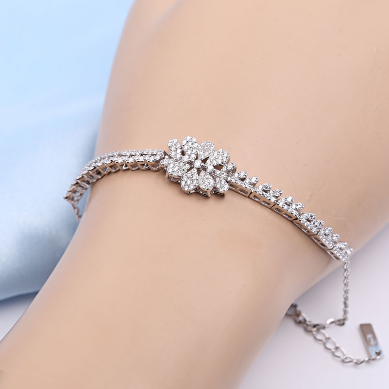 Нежный, женственный браслет из серебра 925 пробы со вставками сверкающих фианитов! Камни, каждой своей гранью, переливаются в лучах солнца. Цепочка - якорное плетение с алмазной огранкой. Превосходный подарок для любимого человека.