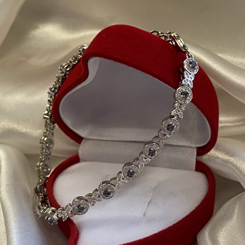 Нежный, женственный браслет из серебра 925 пробы со вставками сверкающих фианитов и кристаллов Swarovski®! Камни, каждой своей гранью, переливаются в лучах солнца. Превосходный подарок для любимого человека.