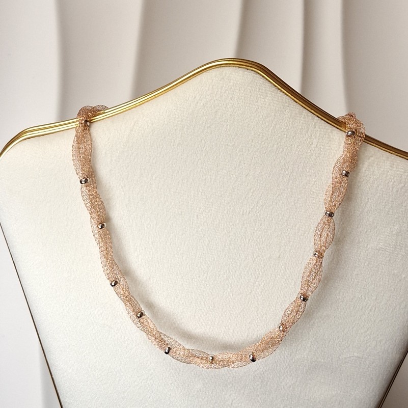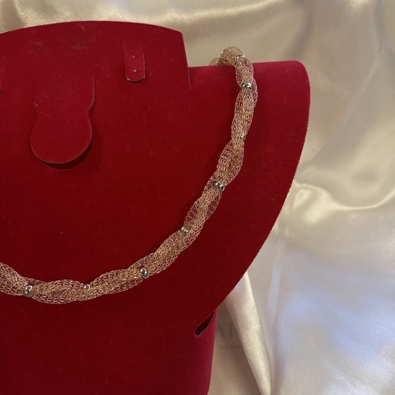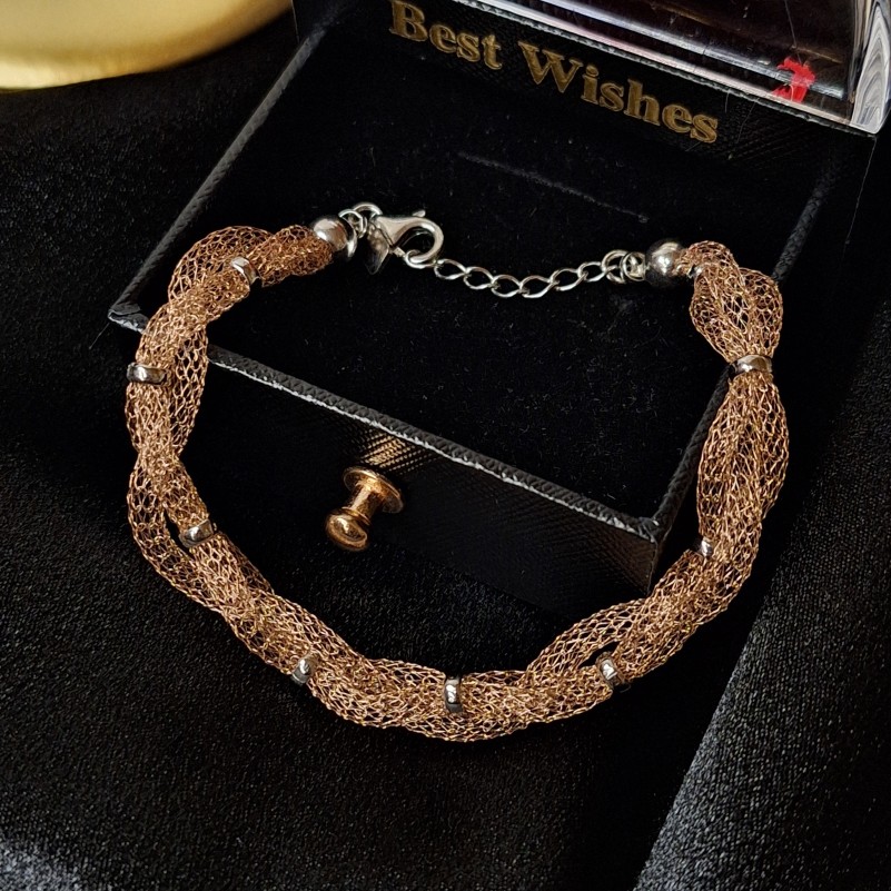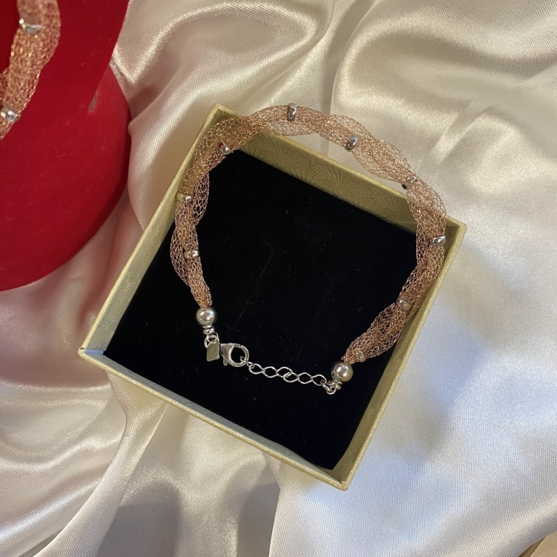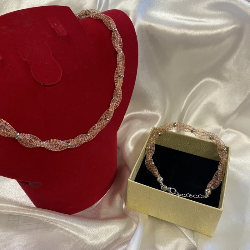 Очаровательный, воздушный гарнитур из позолоченного серебра 925 пробы, созданного по особой технологии. Позолоченные плетённые жгуты-сеточки переплетены, украшены и зафиксированы серебряными концевиками. Очень нежное изделие, которое обязательно дополнит ваш романтичный образ!