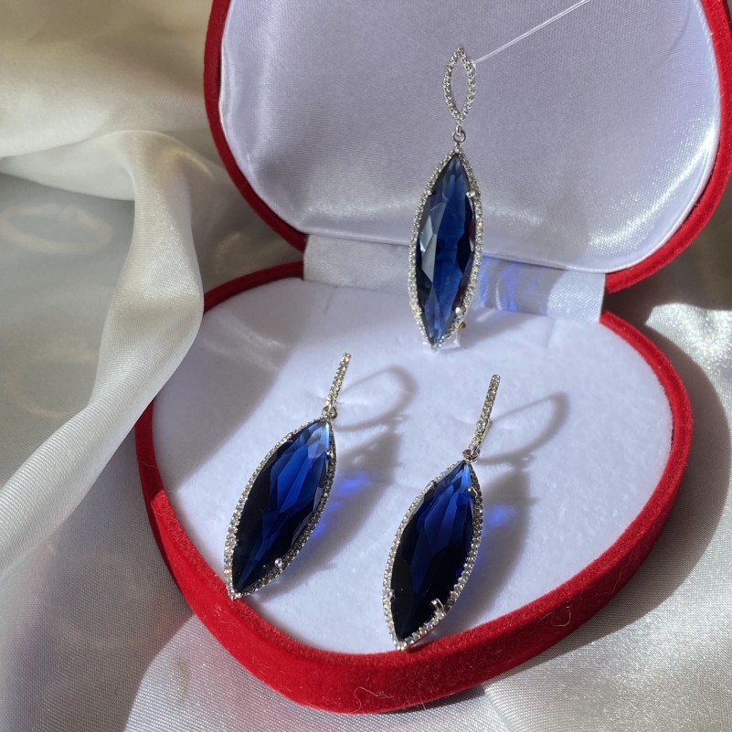 Очаровательная серебряная подвеска со вставками необыкновенно красивого иолита и сверкающих фианитов. Серебро 925 пробы. Прекрасное романтичное дополнение к Вашему образу!