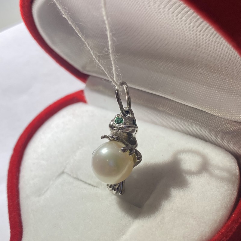Очаровательная серебряная подвеска со вставками необыкновенно красивых и сверкающих зелёных фианитов и природного, искусственно выращенного, жемчуга, растущего в привычных для себя условиях! Серебро 925 пробы. Прекрасное романтичное дополнение к Вашему образу!