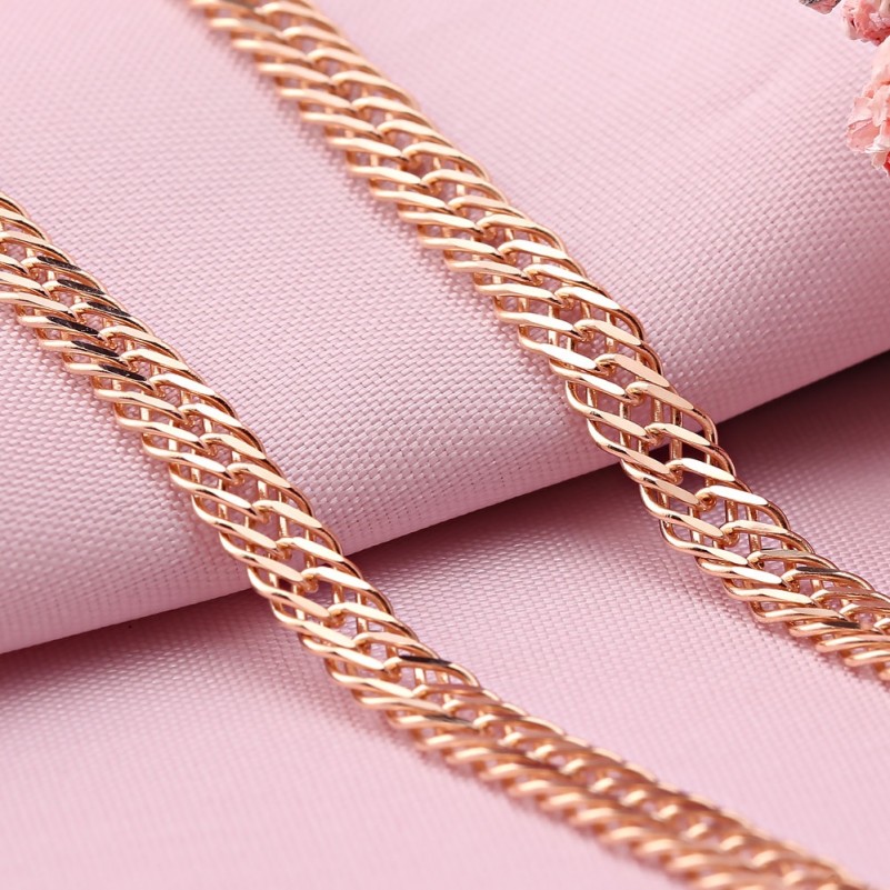 «Ромб» как правило бывает двойным и тройным: за счет особой ажурности плетения и ширины звеньев такие цепочки хорошо носить как самостоятельное украшение, но и в сочетании с подвеской они смотрятся замечательно. Свет необычным образом отражается от звеньев. Цепочка надолго сохраняют свой первоначальный праздничный блеск и красоту.