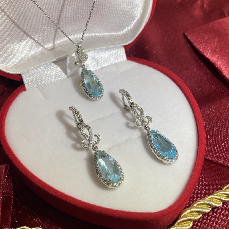Вставка: фианиты круг Ø 1.5 мм; аквамарин капля 16.0 х 7.0 мм