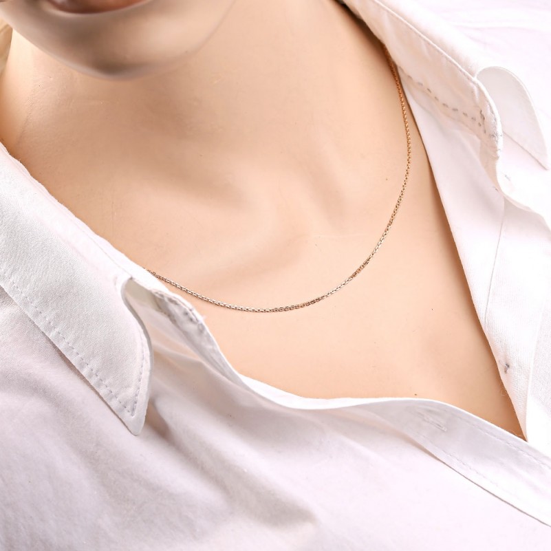 Цепочка из красного золота 585 пробы. Элегантная и женственная цепочка, выполненая в якорном плетении с алмазной огранкой! Благодаря алмазной обработке звеньев цепи, изделие выглядит богато и привлекает восторженные взоры окружающих, переливаясь и сверкая на солнце.