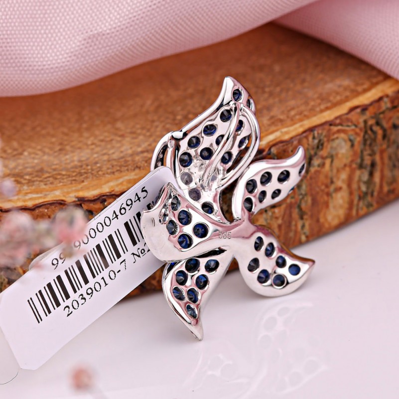 Вставки: бриллианты E/VS1 0.110 ct.; сапфир круг Ø 2.0 мм 1.770 ct.