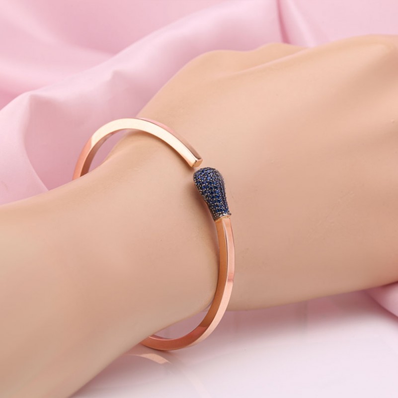 Красное золото 585 Русское золото в Германии Браслет с фианитами. Элегантный браслет-обруч из красного золота с акцентами чернения со вставками сверкающих цветных фианитов. Превосходно украсит изящные женские руки!