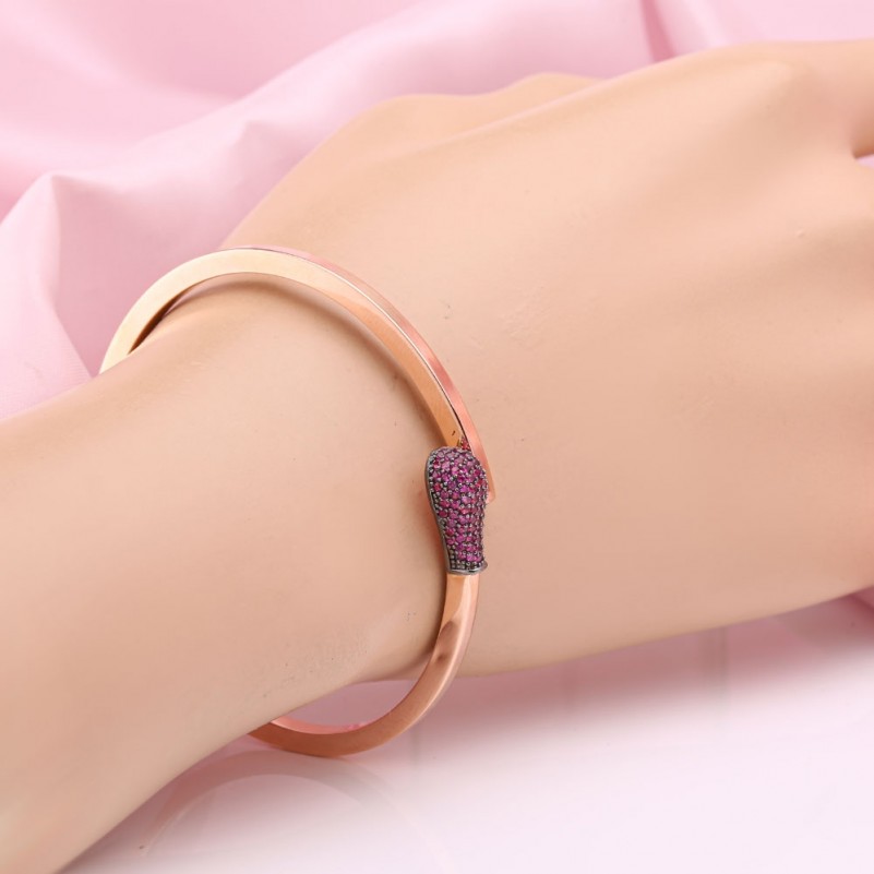 Красное золото 585 Русское золото в Германии Браслет с фианитами. Элегантный браслет-обруч из красного золота с акцентами чернения со вставками сверкающих цветных фианитов. Превосходно украсит изящные женские руки!