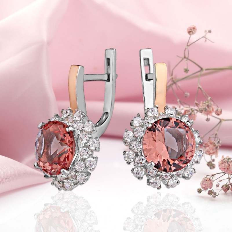 Очаровательные серьги из серебра 925 пробы с золотом 375 пробы, украшенные сверкающими фианитами и султанитом. Если вы хотите подчеркнуть женственность, грацию, улыбку и красоту, то такое изделие сделает это как нельзя лучше.