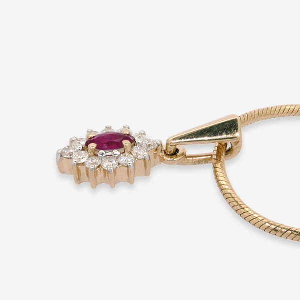 Подвеска из красного золота с рубином и бриллиантами. Цепочка в цену не входит.