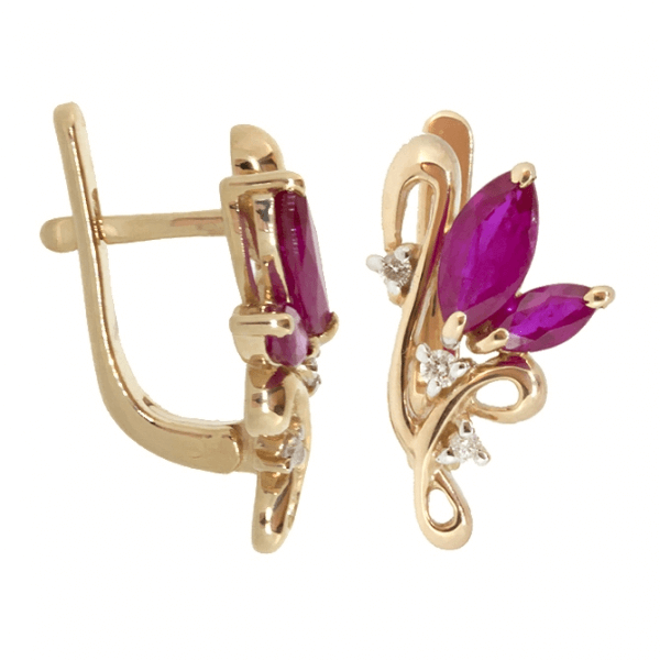 Золотые серьги с рубинами и бриллиантами