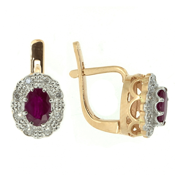 Золотые серьги с рубинами и бриллиантами