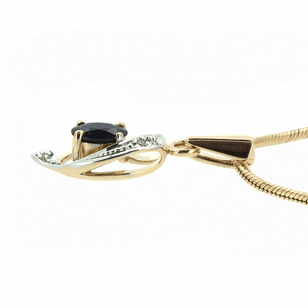 Нежная подвеска из красного золота с сапфиром и бриллиантами.