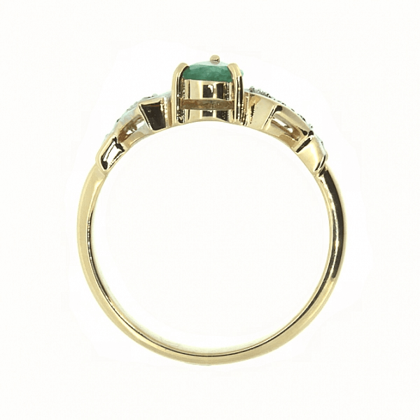 Кольцо из красного золота с изумрудом и бриллиантами.