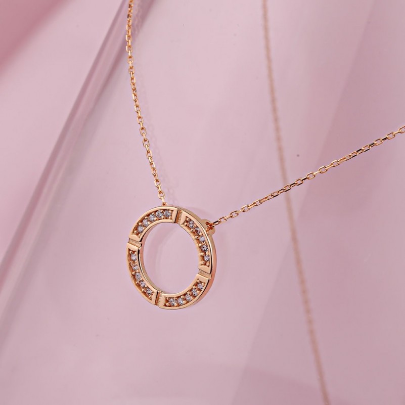 Красное золото 585 пробы Золотое колье Фианиты. Нежное и романтичное колье из красного золота 585 пробы, украшенное подвеской-бегункомсо вставками сверкающего фианита. Цепь - якорное плетение с алмазной огранкой.
