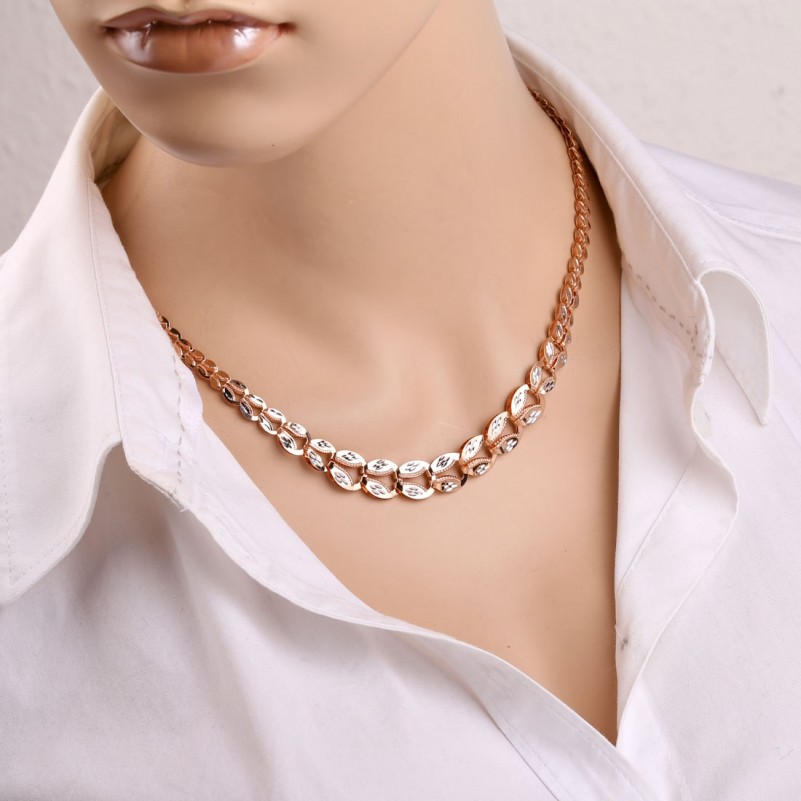 Колье из русского золота 585 пробы в Германии Браслет из русского золота 585 пробы. Очаровательное объемное колье и браслет из красного и белого золота 585 пробы, выполненое в фантазийном плетении! Превосходно блестит и сверкает в лучах света, притягивая взгляд своим неповторимым узором. Алмазная огранка!