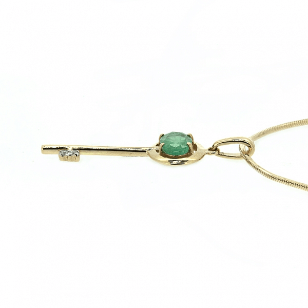 Золотая подвеска "Ключик" с изумрудом и бриллиантами