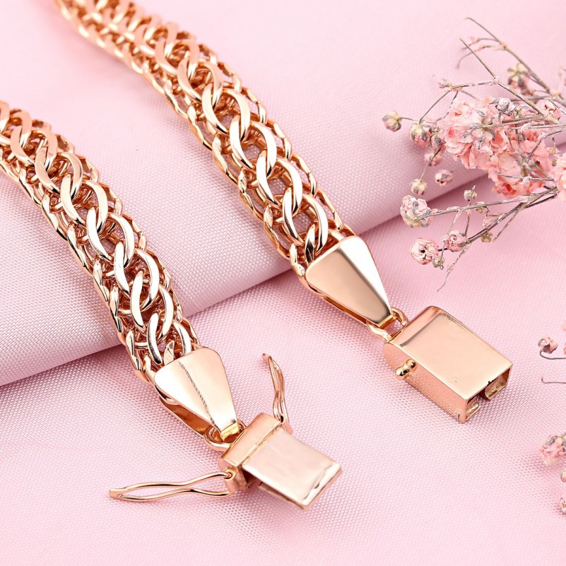бисмарк" считается одним из самых красивых и прочных. Это сложная, но эффектная вязь, которая обеспечивает крепкое сцепление звеньев. Бисмарк может быть одинарным, двойным или тройным, бывают украшения с 4 рядами звеньев. Цепочки и браслеты, выполненные по технологии плетения бисмарк, выглядят привлекательно и солидно, а потому высоко востребованы среди людей, которые ценят сочетание красоты и практичности.