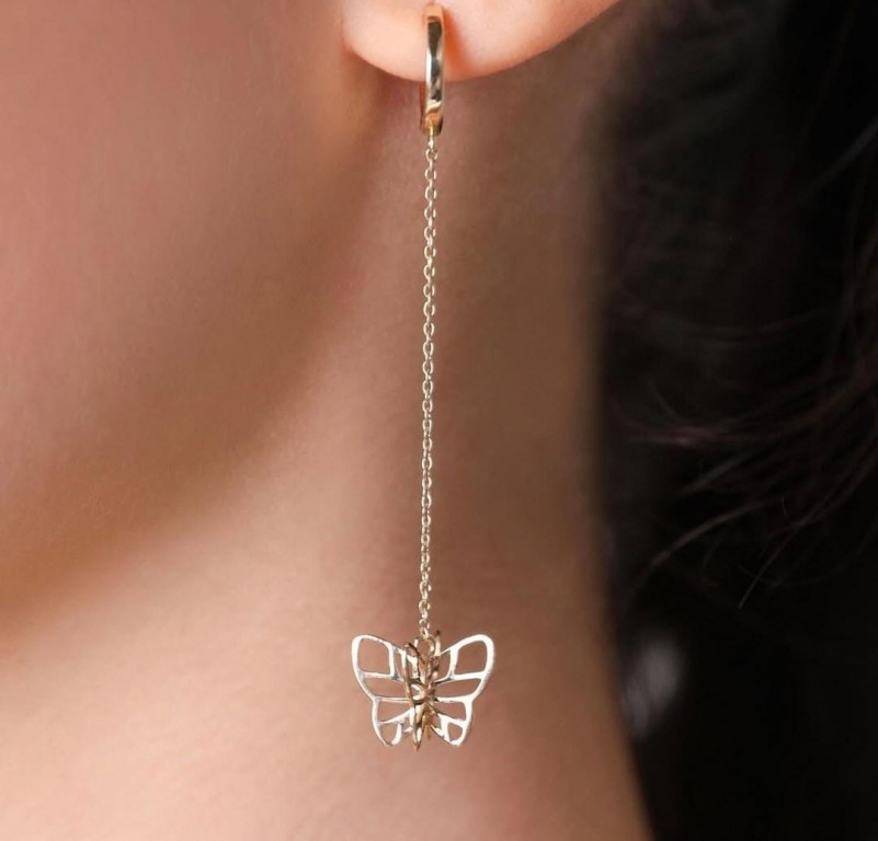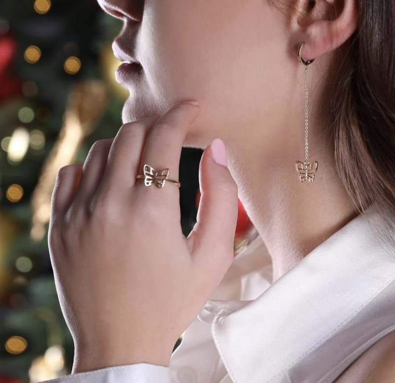 Золотые серьги в Германии ПодвескиРусское золото 585. Женственные серьги-подвески из красного золота 585 пробы с подвесками в виде объёмных бабочек. Бабочки игриво качаются на цепочках якорного плетения и сияют, подчёркивая нежность и очарование Вашей красоты! Замечательный подарок для любимого человека!