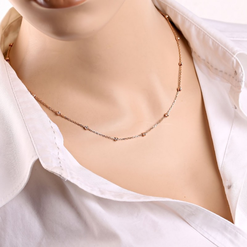 Колье Русское золото 585 в Германии. Нежное и романтичное колье из красного золота 585 пробы, украшенное вставками в виде декоративных шариков алмазной огранки. Цепь - якорное плетение с алмазной огранкой. Если вы хотите подчеркнуть в вашей спутнице ее женственность, грацию, улыбку и красоту, то такой подарок сделает это как нельзя лучше.
