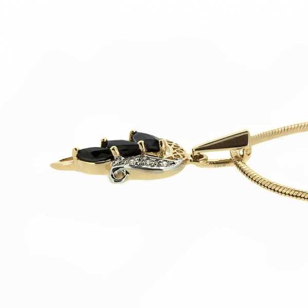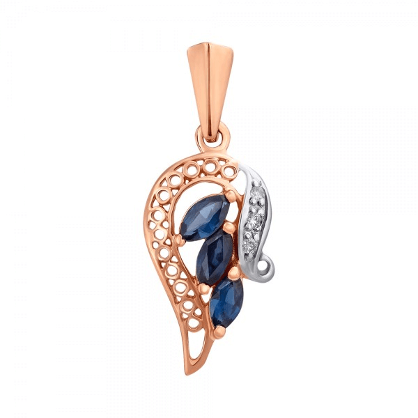Элегантная подвеска из красного золота с сапфирами и бриллиантами.
