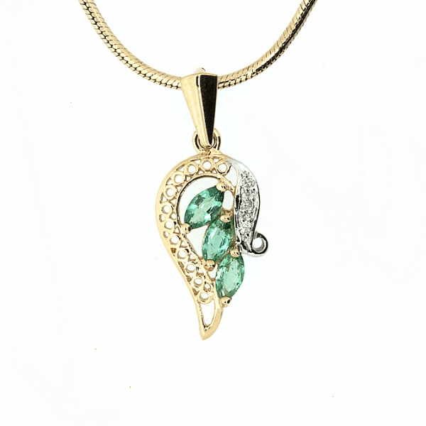 Подвеска из красного золота с изумрудами и бриллиантами.