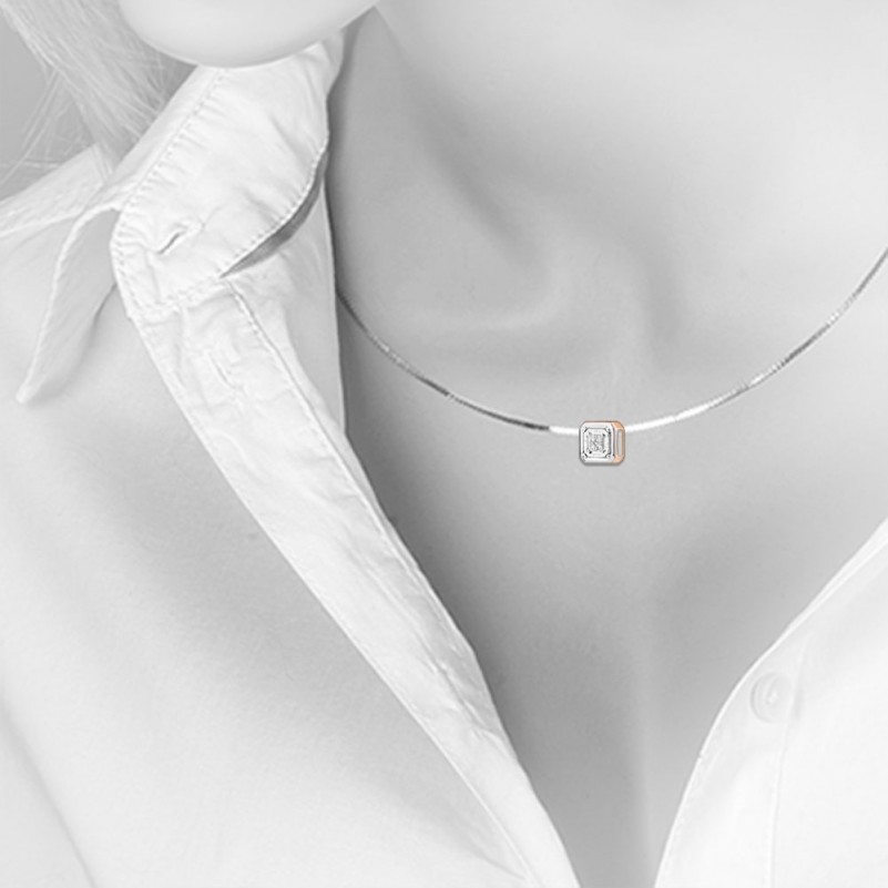 Золотая подвеска с бриллиантами. Обворожительная, изящная подвеска-бегунок из красного и белого золота 585 пробы, украшенная сверкающими бриллиантами. Оправа из белого золота c алмазной огранкой по-особому подчёркивает достоинства и красоту бриллианта. Эта замечательная подвеска освежит любой наряд, подчеркнёт красоту шеи, внесет в образ нотку романтичности и таинственности.