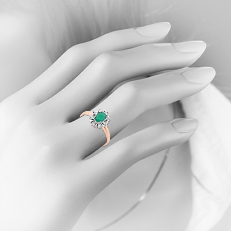 Золотые кольца в Германии Изумруд и бриллианты. Красное золото 585 пробы с акцетами из белого золота, превосходно подчёркивающих красоту камней. Очень нежное и стильное золотое кольцо с ярким изумрудом и сверкающими бриллиантами. Изумруд символизирует мудрость, а бриллианты благополучие, поэтому подарок в виде золотого кольца с такими камнями будет достойным подарком!