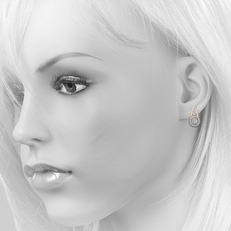 Изящные, женственные серьги из красного золота 585 пробы со вставками очаровательных бриллиантов на фоне из белого золота с алмазной огранкой. Идеальное завершение имиджа стильной женщины, которая любит менять образы - это cерьги с бриллиантами из красного золота 585 пробы. Такое изделие, выразительное и изысканное, подходит женщинам любого возраста, которые ценят интересный дизайн и безупречность камней.
