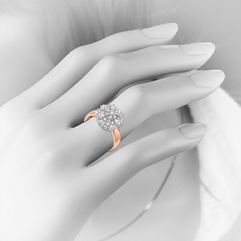 Золотые кольца 585 в Германии Бриллианты. Кольцо из русского красного золота 585º с акцентами из белого золота, превосходно подчёркивающего сияние и неповторимую красоту бриллиантов. Изящное золотое кольцо с бриллиантами для красивых женских пальчиков! Безусловно, каждая женщина мечтает о таком незабываемом и запоминающимся подарке, как золотое кольцо с бриллиантом.