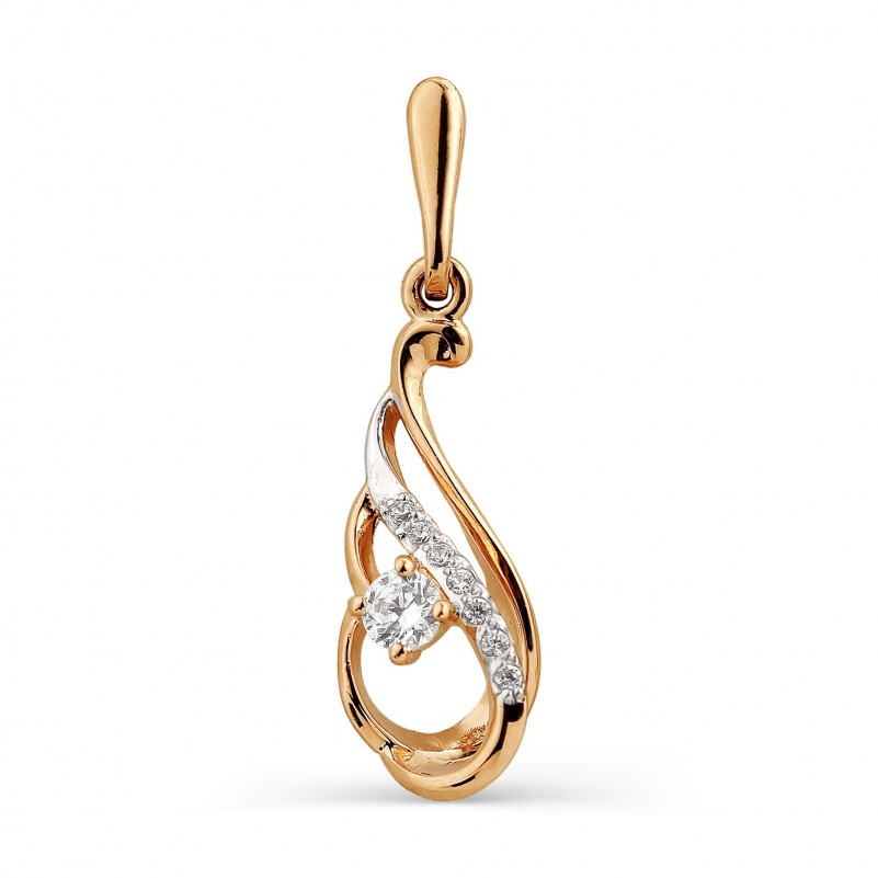 Золотая подвеска 585 пробы Фианиты. Очаровательная подвеска из красного золота 585 пробы с акцентами из белого золота, украшенная сверкающими фианитами. Если вы хотите подчеркнуть в вашей спутнице ее женственность, грацию, улыбку и красоту, то такой подарок сделает это как нельзя лучше.
