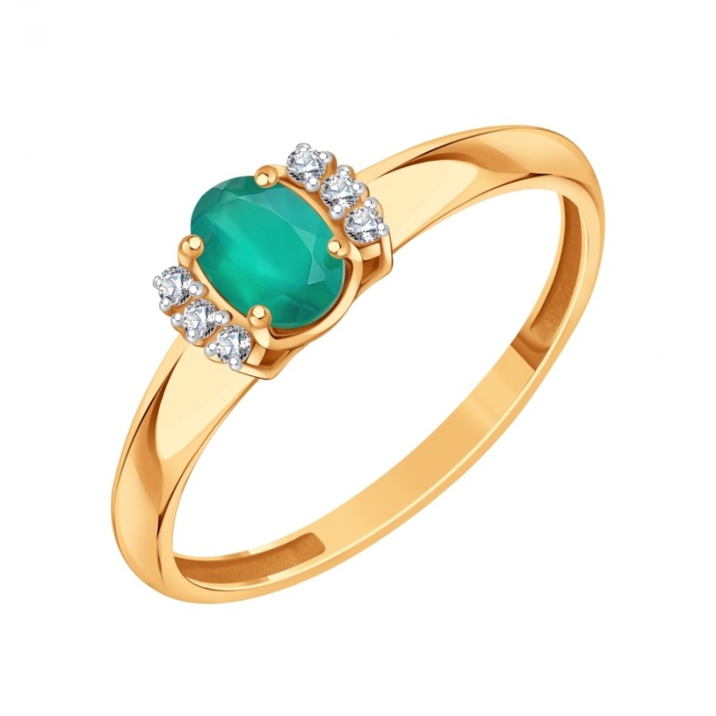 Кольцо из красного золота 585 Агат Фианит. Золотое кольцо из русского красного золота 585 пробы с агатом и фианитами, с акцентами из белого золота, которые подчеркивают сияние камней. Обаятельное и нежное кольцо из красного золота 585 пробы подчеркнёт женственность, изящество и хороший вкус. Очаровательный подарок для любимого человека!