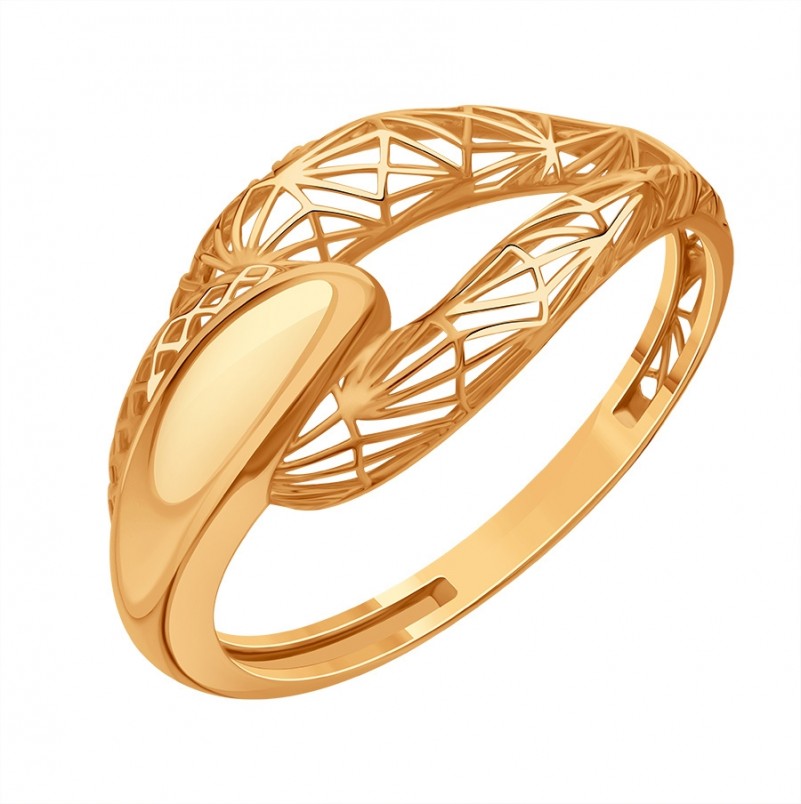 Золотое кольцо из красного золота 585 пробы. Нежное и романтичное кольцо с филигранью и зеркальной поверхностью. Прекрасный подарок для любимой, который способен подчеркнуть её женственность!