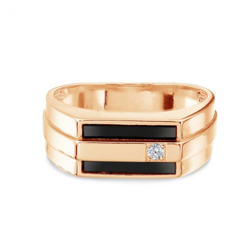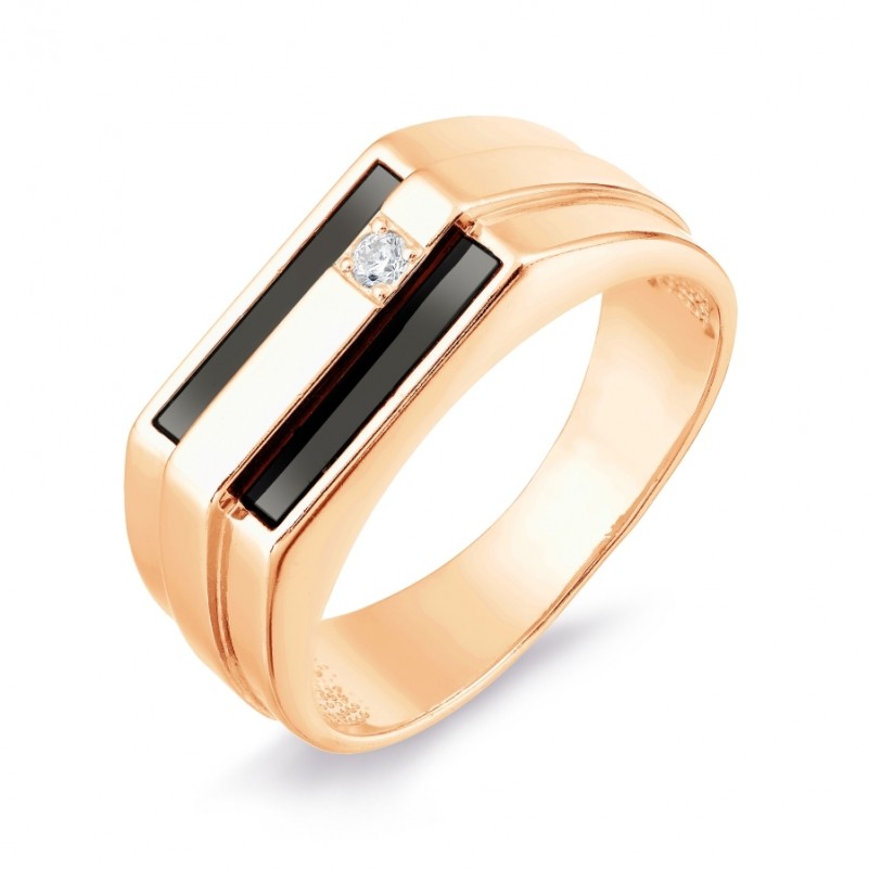 Мужская печатка Русское золото 585 Фианит. Аккуратное и стильное мужское кольцо из красного золота 585 пробы со вставкой очаровательного белого и чёрного фианита.