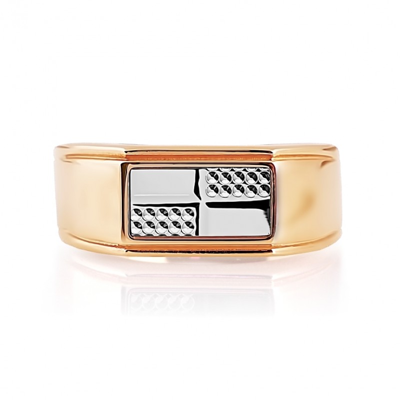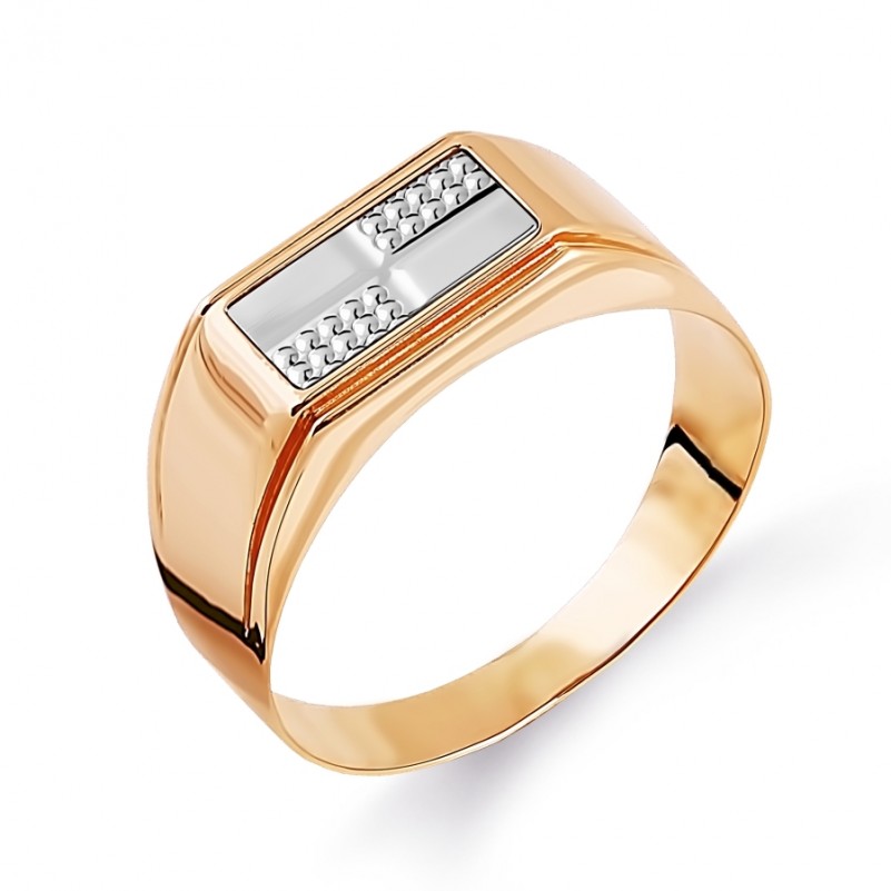 Мужская печатка Русское золото 585. Аккуратное и стильное мужское кольцо из красного золота 585 пробы с акцентами из белого золота c алмазной огранкой.