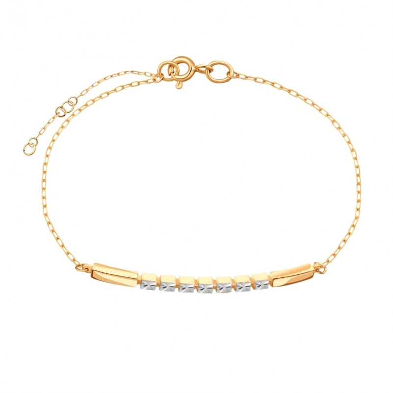 Браслет Русское золото 585 биколор. Нежный и романтичный браслет из красного золота 585 пробы, украшенный вставкой из красного и белого золота с алмазной огранкой. Цепь - якорное плетение с алмазной огранкой.