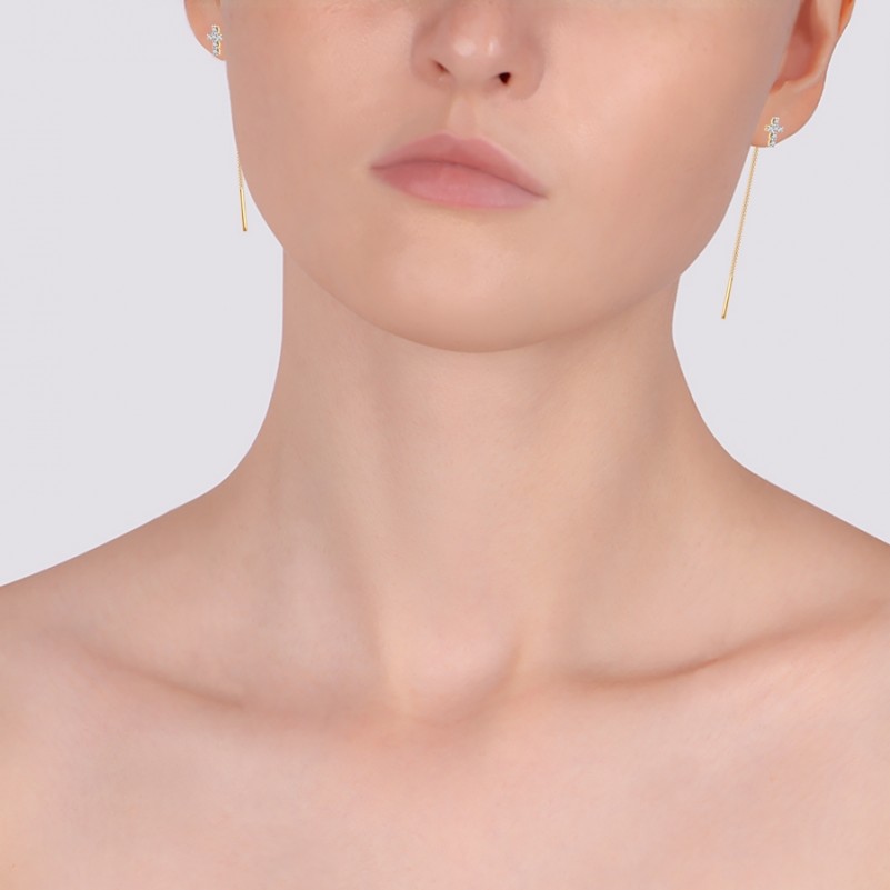Серьги Золотые с Фианитом не предназначены для детей до 3 лет. Опасность удушья от проглатываемых мелких деталей. Не носить при физической работе, занятиях спортом, плавании, сне - опасность потери мочки уха, опасность повреждения продуктов. Пожалуйста, используйте с осторожностью, чтобы избежать зацепления или повреждения продукта.