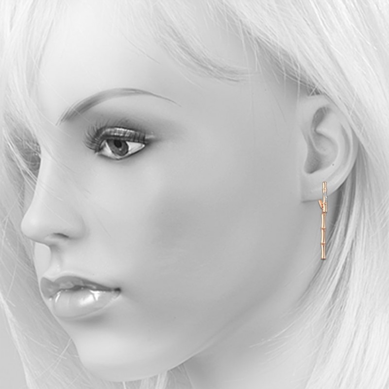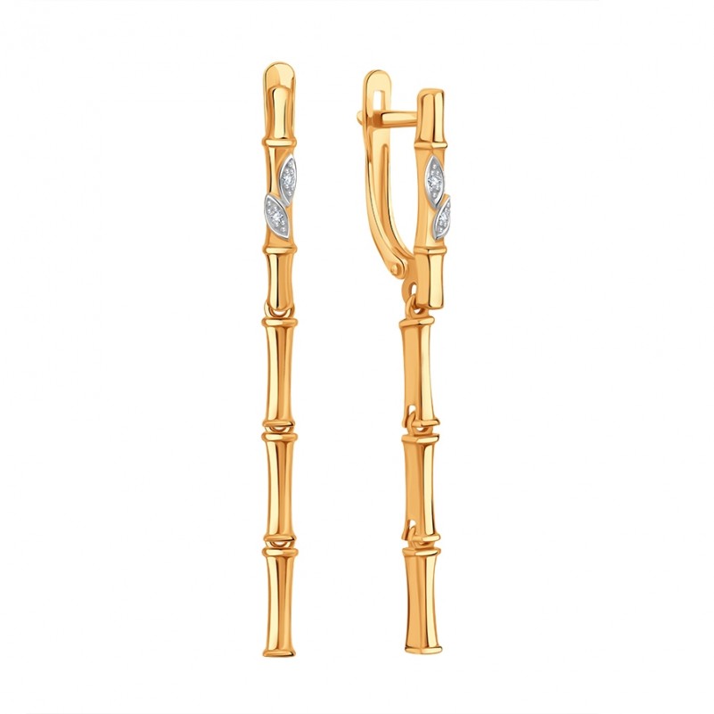 Золотые серьги-подвески Русское золото 585 Фианит. Женственные, изящные серьги-подвески из красного золота, украшенные сверкающими фианитами на фоне белого золота. Подчеркнёт вашу элегантность и женственность, приковывая восхищённые взгляды.