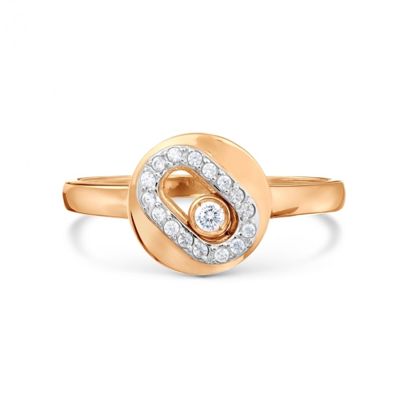 Кольцо из русского золота 585 Фианит. Золотое кольцо из русского красного золота 585 пробы с фианитами и акцентами из белого золота. Обаятельное и нежное кольцо из красного золота 585 пробы подчеркнёт женственность, изящество и хороший вкус. Очаровательный подарок для любимого человека!