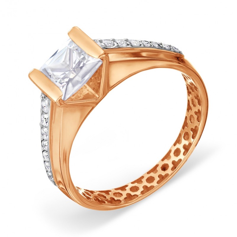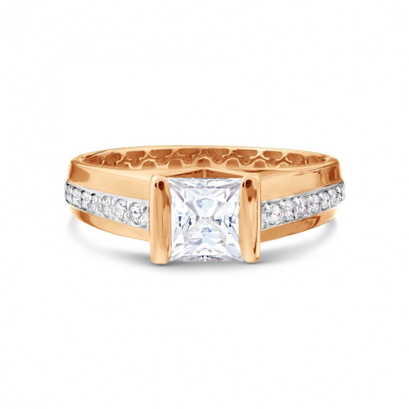 Кольцо из русского золота 585 Фианит. Золотое кольцо из русского красного золота 585 пробы с фианитами и акцентами из белого золота. Обаятельное и нежное кольцо из красного золота 585 пробы подчеркнёт женственность, изящество и хороший вкус. Очаровательный подарок для любимого человека!