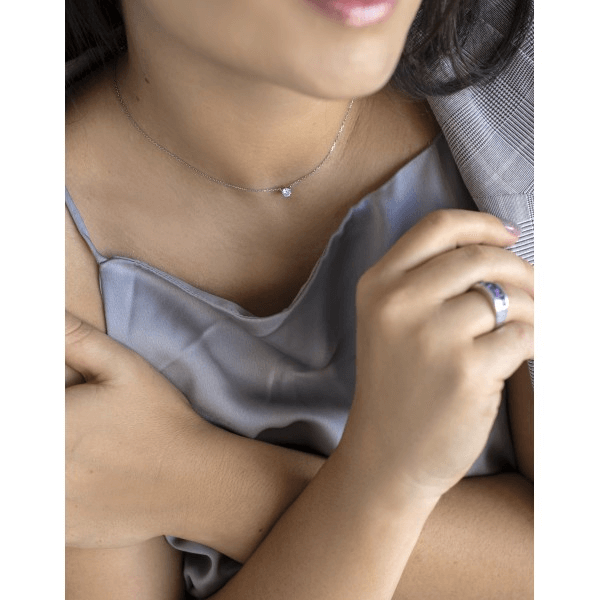 Миниатюрное колье в белом золоте с бриллиантом 0,23 карата.