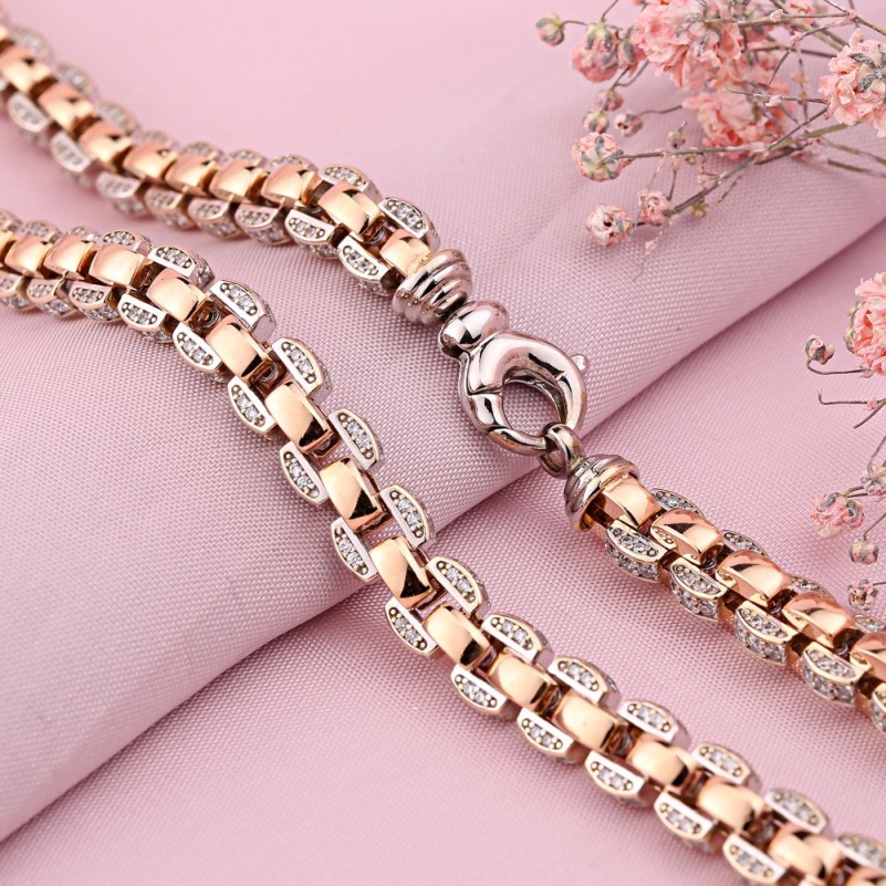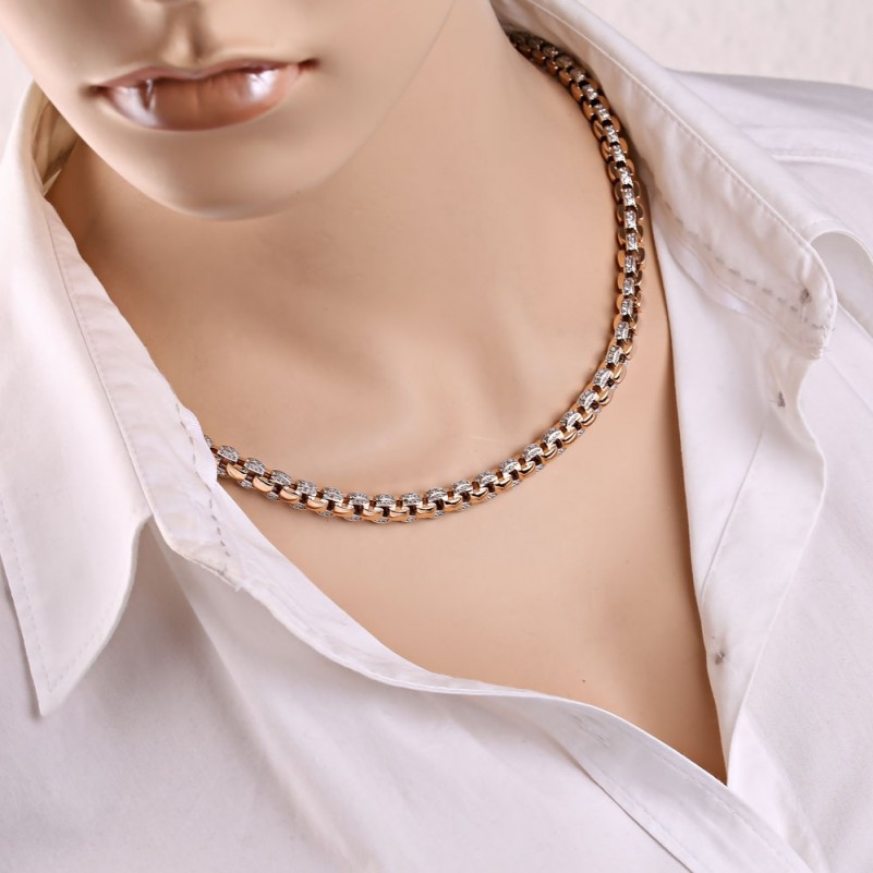 Русское золото в Германии. Цепь массивная якорная биколор Фианиты. Цепь-ожерелье массивная якорная, выполненая из красного и белого золота 585 пробы со вставками очаровательных фианитов. Данное изделие подчеркнёт Ваш статус и глубокое чувство стиля и подойдёт как для женщины, так и для мужчины!