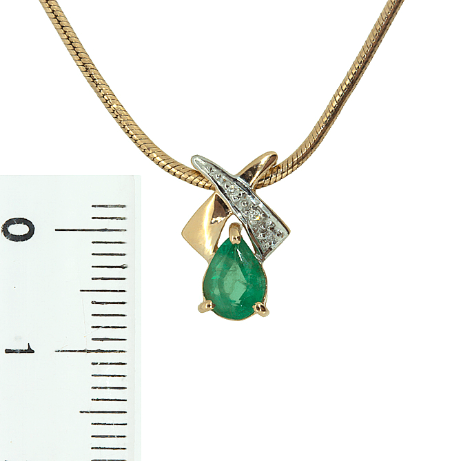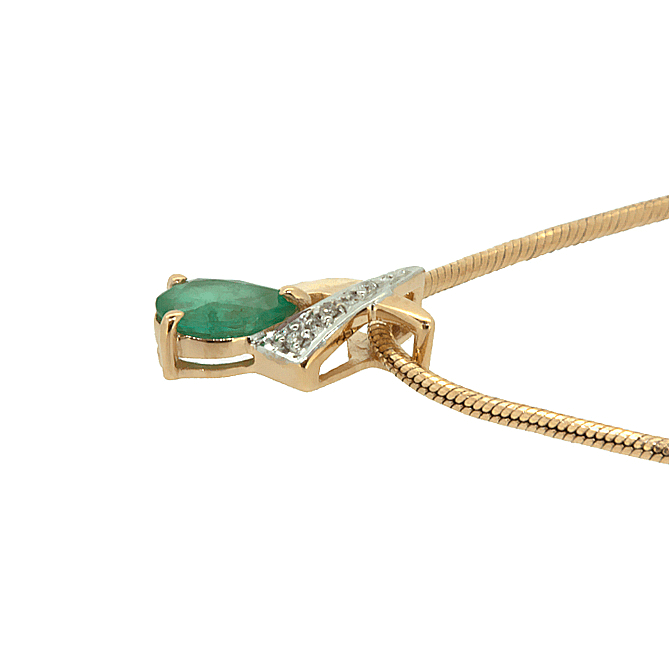 Легкий и изящный кулон в красном золоте с изумрудом и бриллиантами.