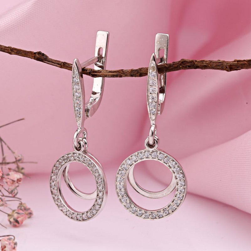 Серебряный гарнитур Фианит. Очаровательный серебряный гарнитур, состоящий из серег-подвесок и кольца, со вставками необыкновенно красивого фианита. Серебро 925 пробы. Прекрасное романтичное дополнение к Вашему образу! Родированное покрытие!