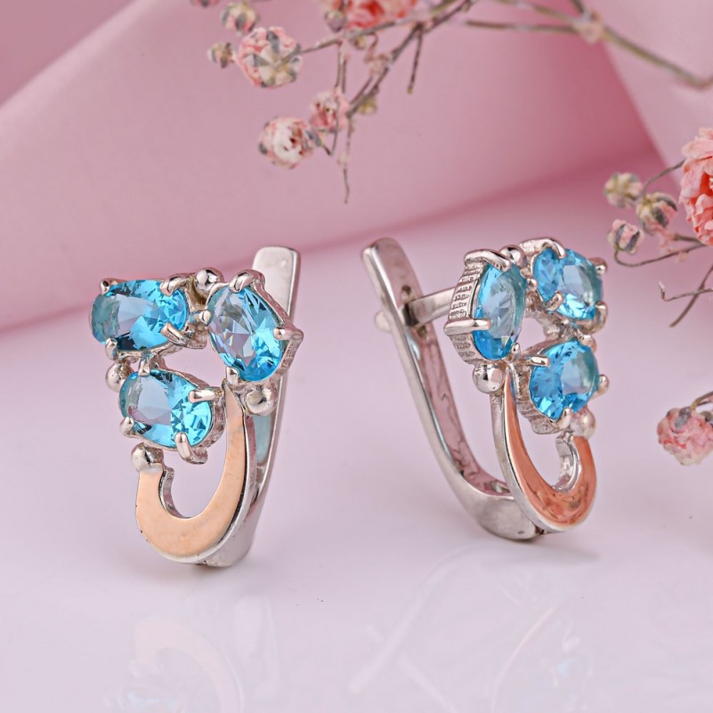 Вставки: 6 фианит голубой овал 6.0 x 5.0 мм