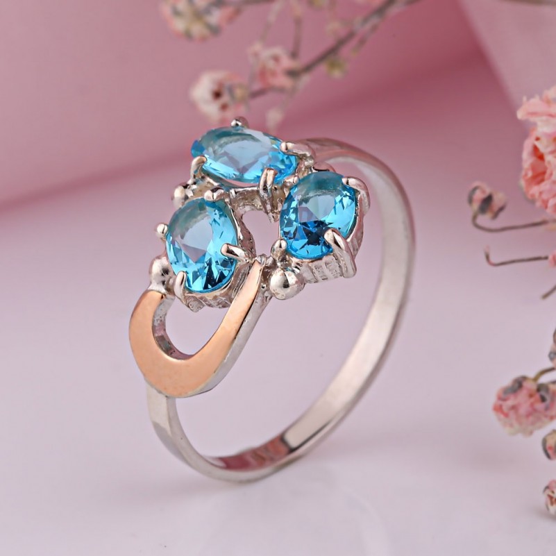 Вставка: 3 фианит голубой овал 6.0 x 5.0 мм