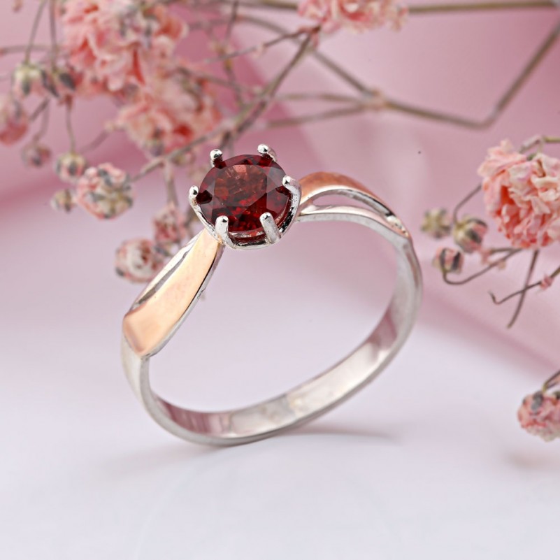 Серебряный гарнитур с золотом Гранат. Очаровательный серебряный гарнитур, состоящий из серег и кольца, со вставками необыкновенно красивого граната. Серебро 925 пробы и золото 375. Прекрасное романтичное дополнение к Вашему образу! Родированное покрытие!