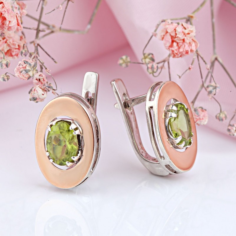 Вставки: 2 хризолит овал 8.0 х 6.0 мм