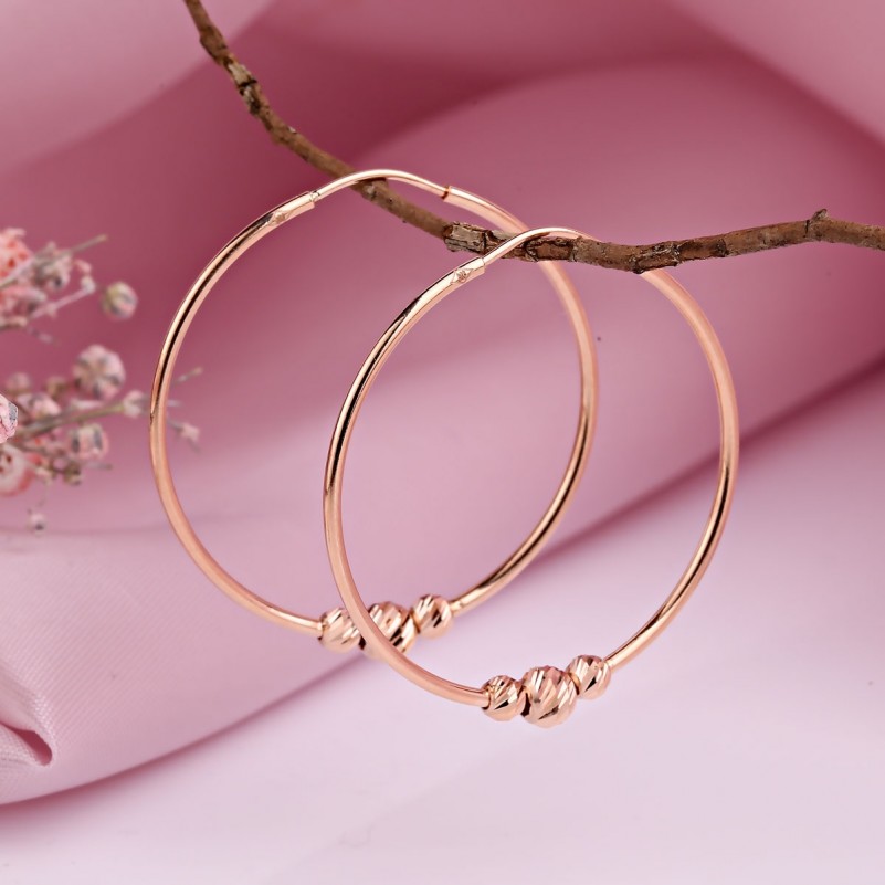Русское золото 585 пробы Золотые серьги конго 31 мм. Элегантные серьги-кольца, известные как креолы, из красного золота 585 пробы, украшенные шариками с алмазной огранкой, подчеркнут ваши женственность и грацию.